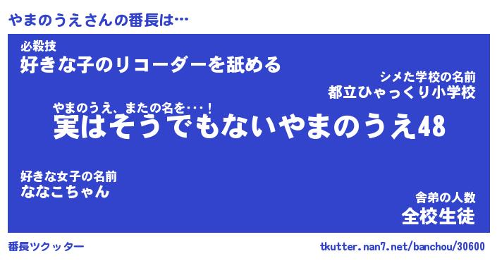 | ヒーロー風カッコイイあだ名 | 『スーパーヤマノウエ』『天弓騎士ヤマ』 |