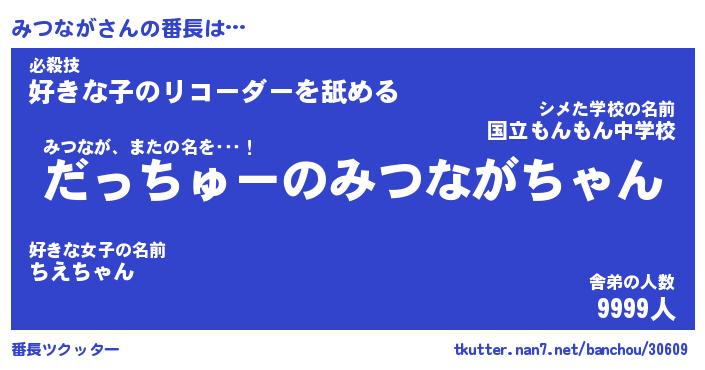 | ピコ太郎風あだ名 | 『ミコ六郎』『ピミ十郎』『ミツ四郎』 |