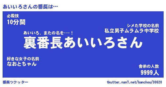 | ヒーロー風カッコイイあだ名 | 『スーパーアイイロ』『暗黒騎士アイ』 |