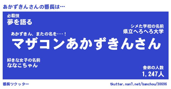 | ヒーロー風カッコイイあだ名 | 『スーパーアカズキン』『銀牙騎士アカ』 |