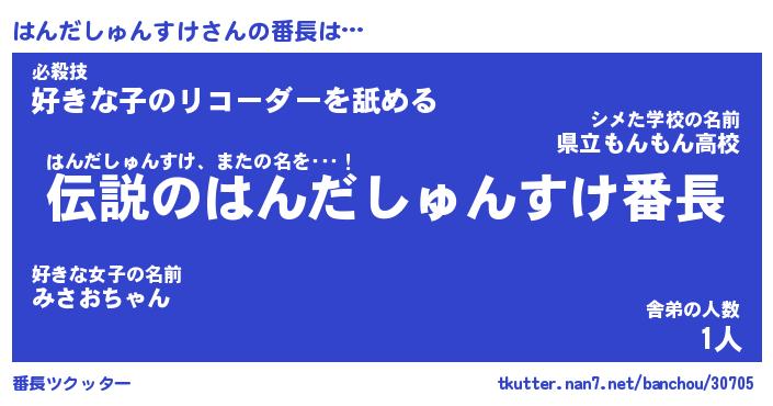 | ポケモン風あだ名 | 『ハンチュウ』『ハンダダネ』 |