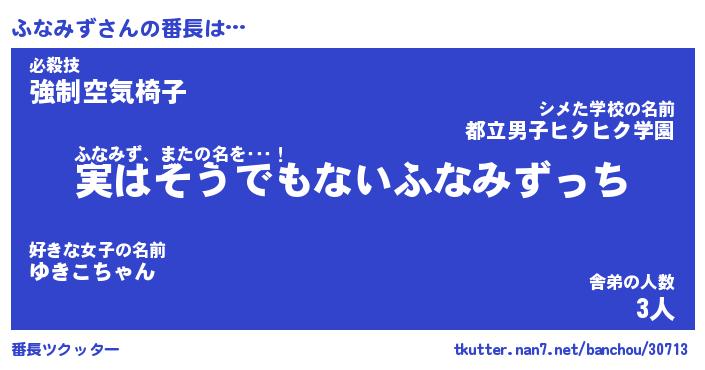 | 意味不明あだ名 | 『ペロリンふなみず』『永久保存ふなみず』 |