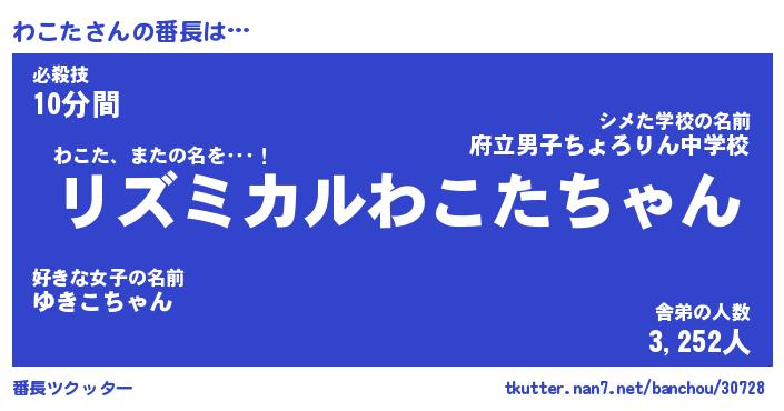 | 伝説のあだ名 | 『伝説のスナイパーわこた』 |