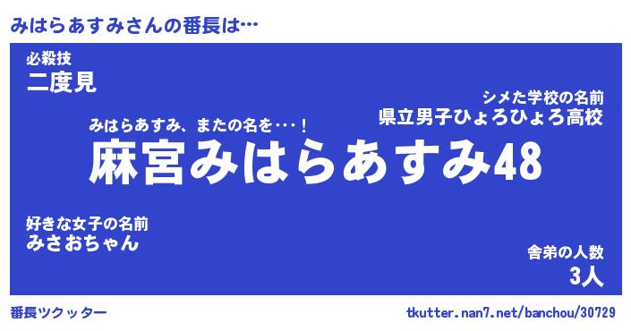 | 胡散臭い通販商品みたいなあだ名 | 『モテモテ間違いなし霊験あらたかなお札…その名も「みはらあすみ」』 |