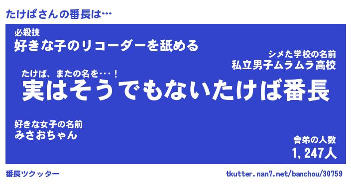| 肩書あだ名 | 『たけばCEO』『たけば総理大臣』 |