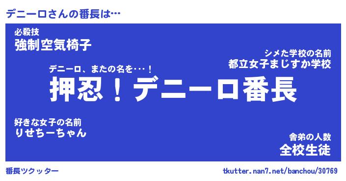 | 意味不明あだ名 | 『ペロリンデニーロ』『永久保存デニーロ』 |