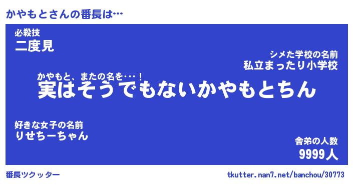 | 肩書あだ名 | 『かやもと店長』『かやもと大統領』 |