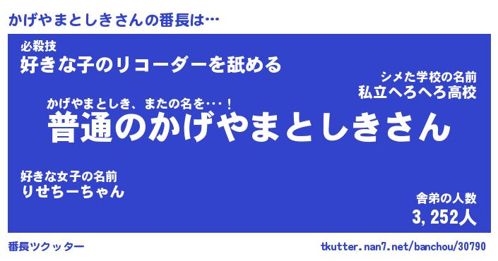 | 意味不明あだ名 | 『ペロリンかげやまとしき』 |