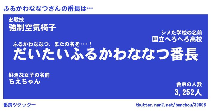 | 男性向けラノベタイトル風あだ名 | 『ふるかわななつの憂鬱』 |