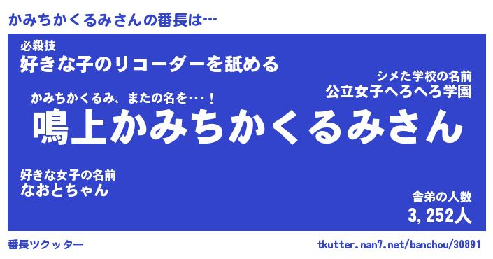 | ヘコむあだ名 | 『かみっふぃ~』『なまこ酢』 |