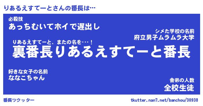 | 伝説のあだ名 | 『不死鳥のスナイパーりあるえすてーと』 |