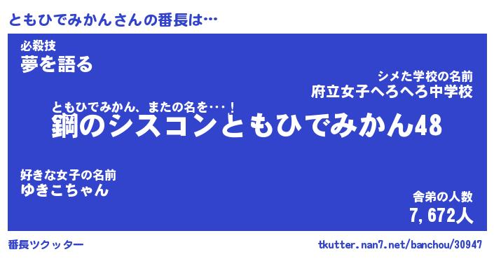 | 肩書あだ名 | 『ともひでみかん御曹司』 |