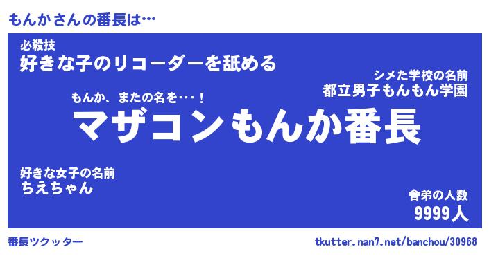 | ヒーロー風カッコイイあだ名 | 『スーパーモンカ』『ウルトラもんかマン』 |