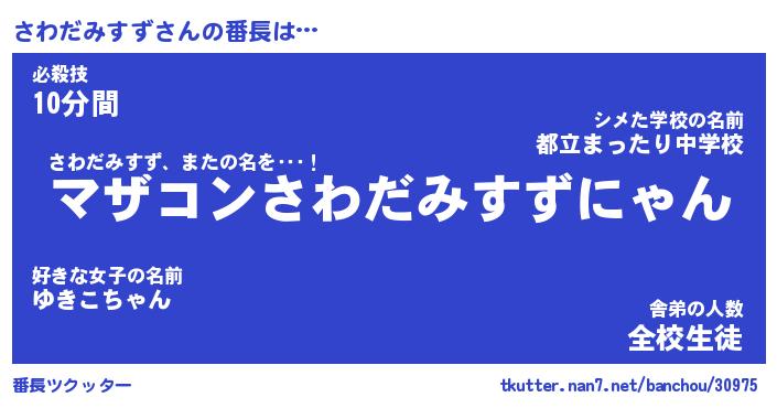 | ヒーロー風カッコイイあだ名 | 『スーパーサワダミスズ』『暗黒騎士サワ』 |