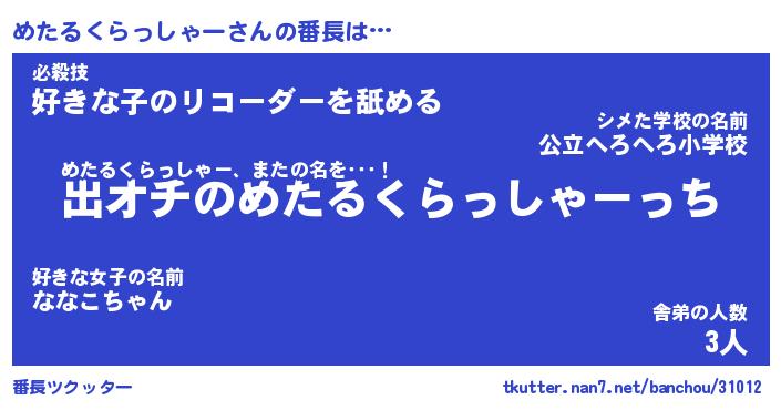 | 2回繰り返すあだ名 | 『めためた』『めめたた』『おたおた』 |