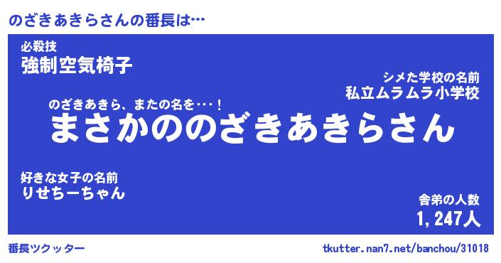 | 男性向けラノベタイトル風あだ名 | 『のざきあきらの憂鬱』 |