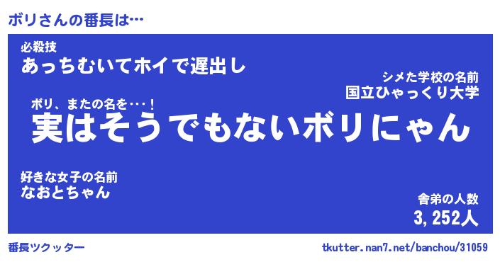 | 2回繰り返すあだ名 | 『ボリボリ』『ボボリリ』『ぬぷぬぷ』 |