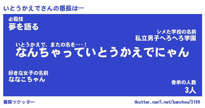 | ピコ太郎風あだ名 | 『イコ三郎』『ピイ三郎』『イト四郎』 |