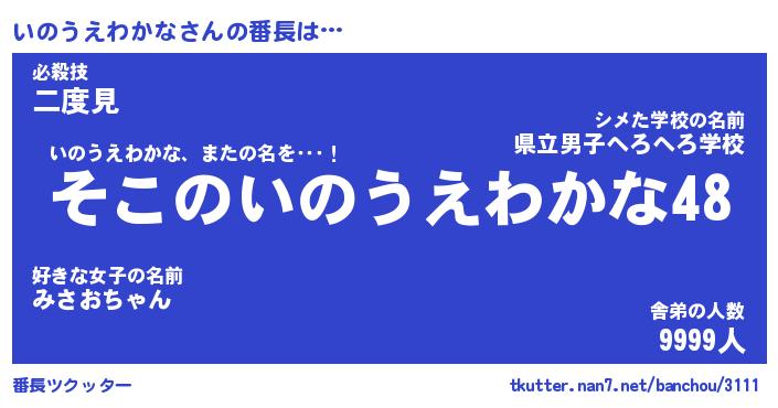 | 男性向けラノベタイトル風あだ名 | 『いのうえわかなの憂鬱』 |