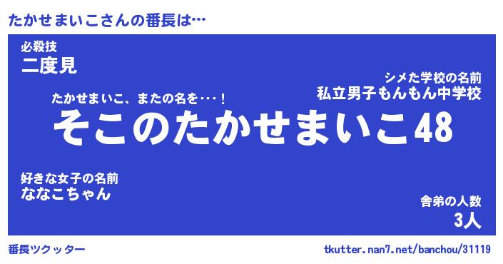 | 肩書あだ名 | 『たかせまいこ御曹司』 |
