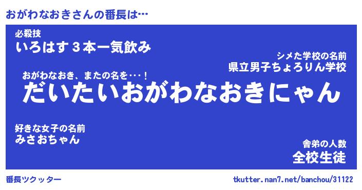 | 2回繰り返すあだ名 | 『おがおが』『おおがが』『うろうろ』 |
