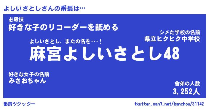 | ヒーロー風カッコイイあだ名 | 『スーパーヨシイサトシ』『炎刃騎士ヨシ』 |