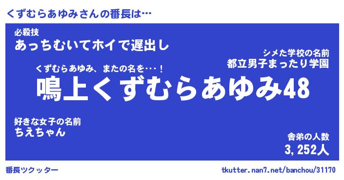 | ヒーロー風カッコイイあだ名 | 『スーパークズムラアユミ』 |