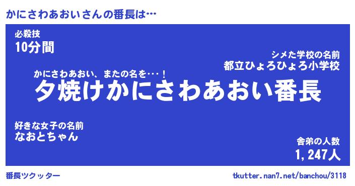 | ヒーロー風カッコイイあだ名 | 『スーパーカニサワアオイ』 |