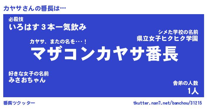 | ヘコむあだ名 | 『カヤもー』『酢こんぶ』『カヤお』 |
