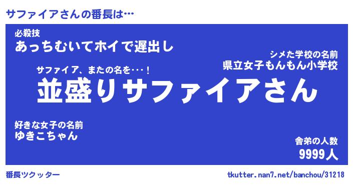 | 欧米人風あだ名 | 『マイケルサファイア』 |
