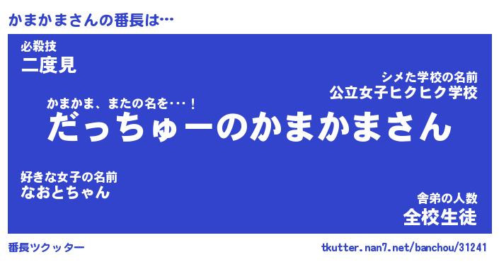 | ヒーロー風カッコイイあだ名 | 『スーパーカマカマ』『暗黒騎士カマ』 |