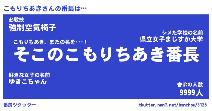 | 伝説のあだ名 | 『不死鳥の傭兵こもりちあき』 |