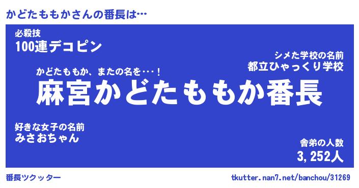 | 肩書あだ名 | 『かどたももか御曹司』 |