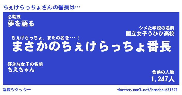 | 伝説のあだ名 | 『伝説のスナイパーちぇけらっちょ』 |