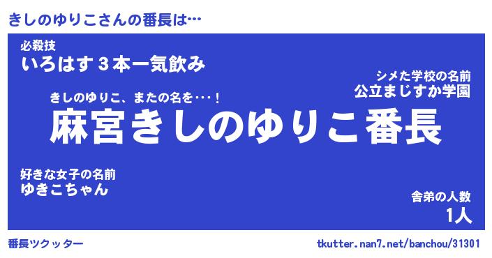 | ヘコむあだ名 | 『きしもー』『なまこ酢』『きしを』 |