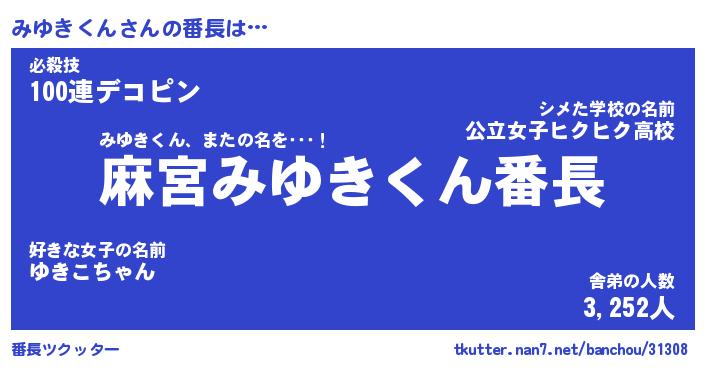 | ピコ太郎風あだ名 | 『ミコ四郎』『ピミ一郎』『ミユ三郎』 |