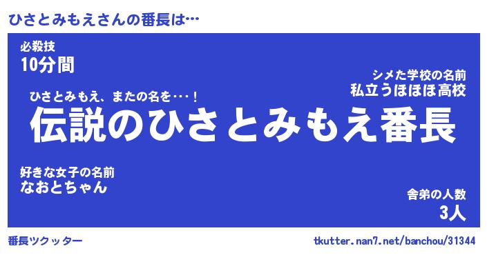 | ヒーロー風カッコイイあだ名 | 『スーパーヒサトミモエ』『魔戒騎士ヒサ』 |