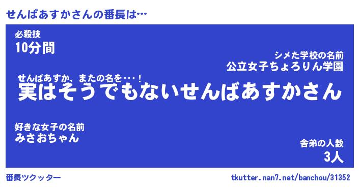 | ヒーロー風カッコイイあだ名 | 『スーパーセンバアスカ』『魔戒騎士セン』 |