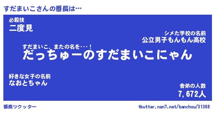 | ピコ太郎風あだ名 | 『スコ一郎』『ピス史郎』『スダ八郎』 |