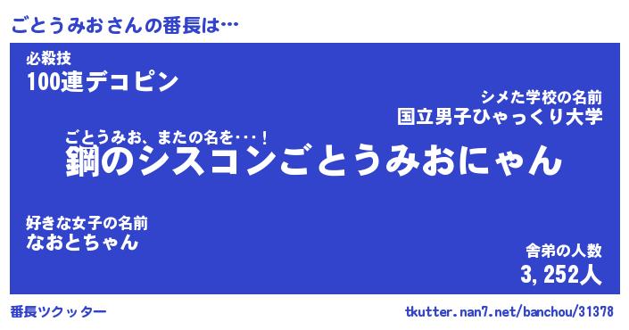 | 肩書あだ名 | 『ごとうみお店長』『ごとうみお国家主席』 |