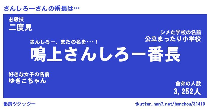 | 2回繰り返すあだ名 | 『さんさん』『ささんん』『ぬぷぬぷ』 |