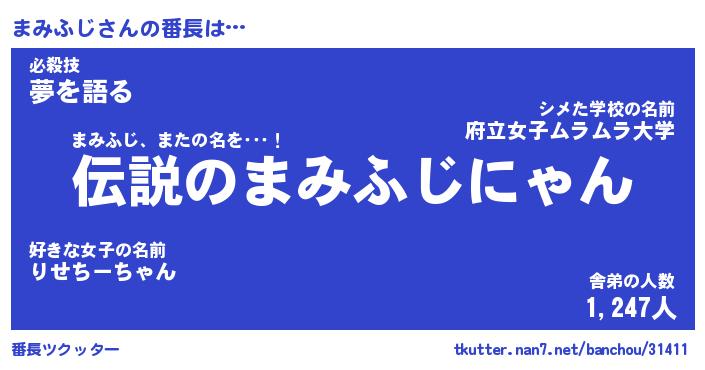 | ファンタジー風あだ名 | 『マミフェル』『エターナルマミフジー』 |