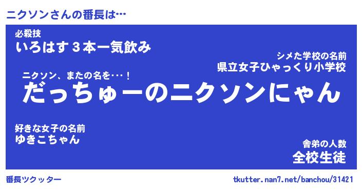 | 意味不明あだ名 | 『ペロリンニクソン』『永久保存ニクソン』 |