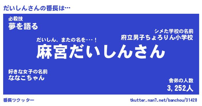 | 意味不明あだ名 | 『ペロリンだいしん』『永久保存だいしん』 |