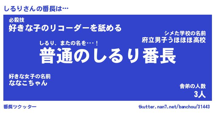 | ヒーロー風カッコイイあだ名 | 『スーパーシルリ』『ウルトラしるりマン』 |