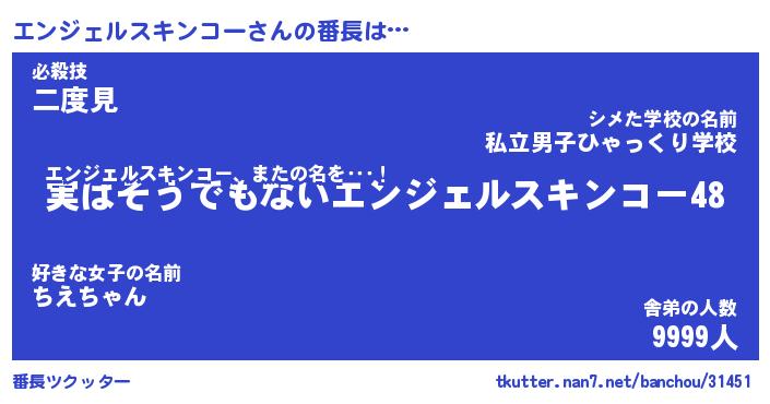 | ヒーロー風カッコイイあだ名 | 『スーパーエンジェルスキンコー』 |