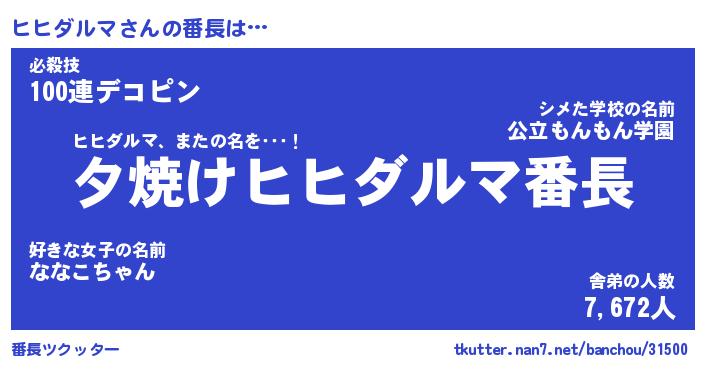 | ファンタジー風あだ名 | 『ヒヒフェル』『エターナルヒヒダルマー』 |