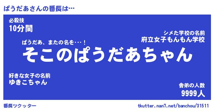 | ヘコむあだ名 | 『ぱうにゅー』『つくし』『ぱうっ子』 |