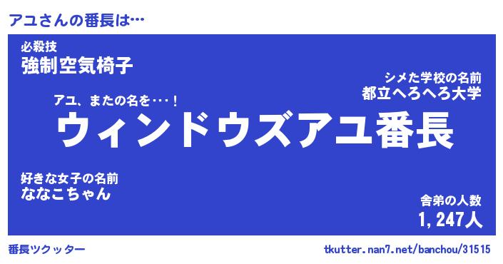 | ヘコむあだ名 | 『アユにー』『つくし』『アユ太郎』 |