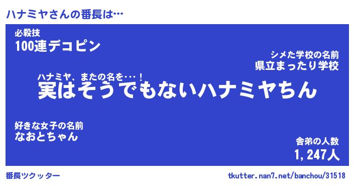 | 肩書あだ名 | 『ハナミヤCEO』『ハナミヤ大統領』 |